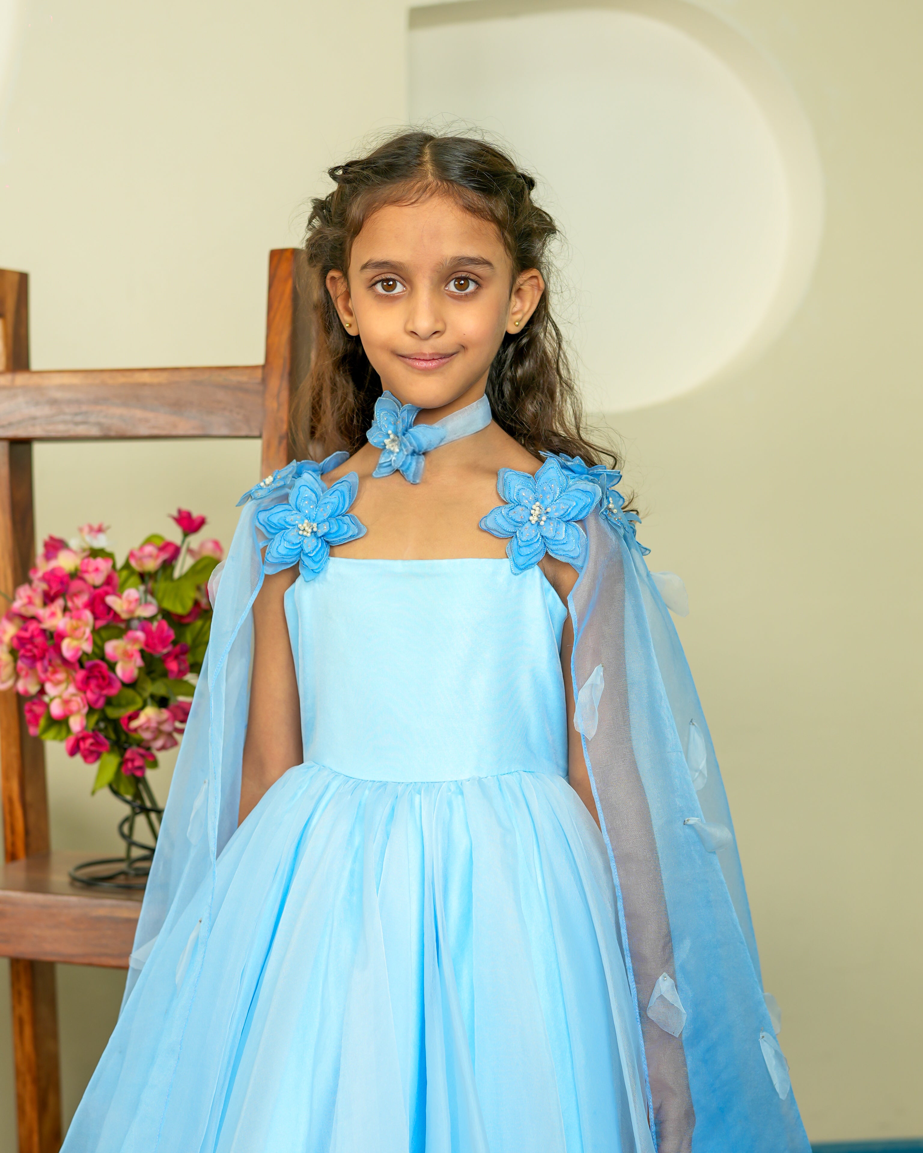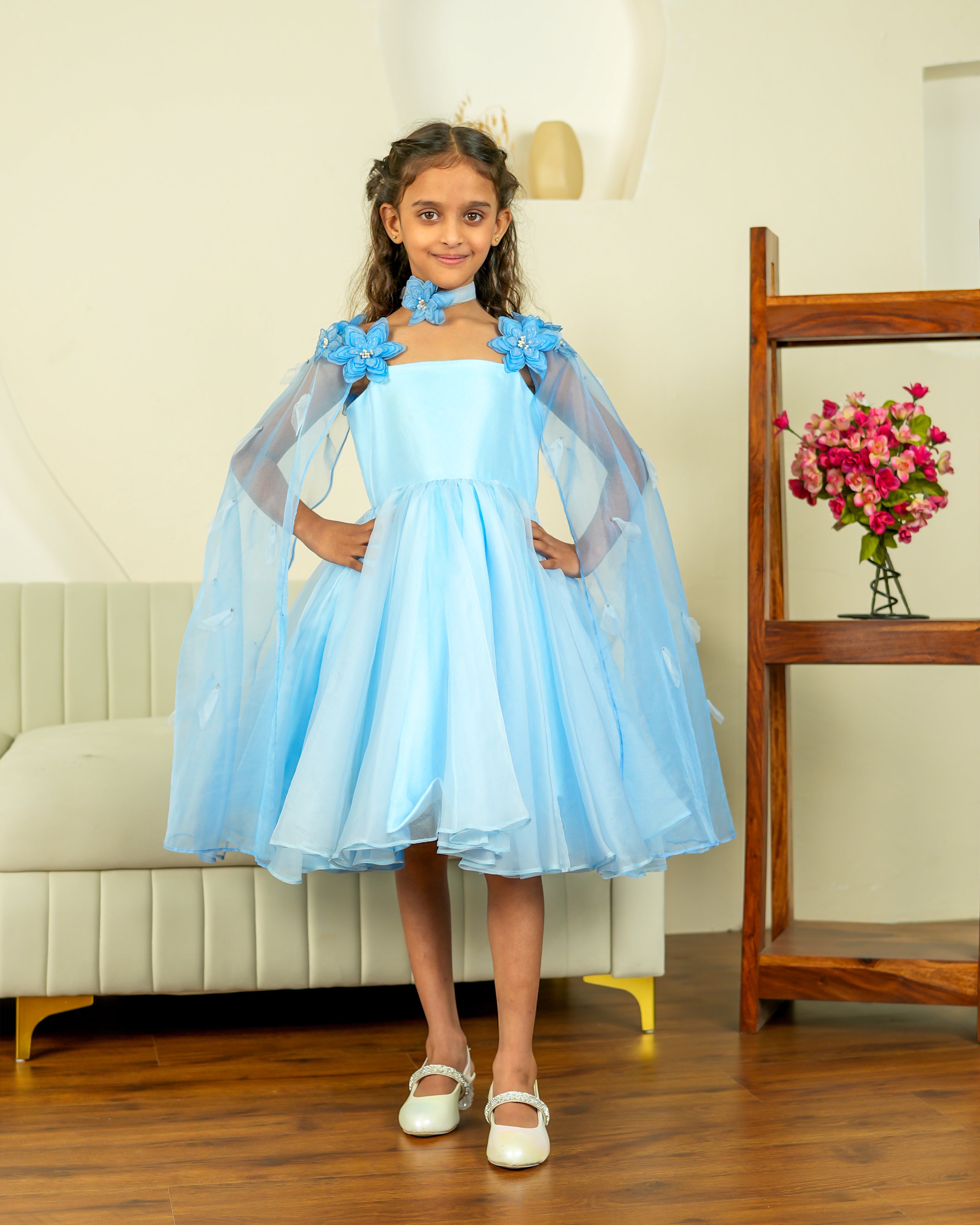 Its twirly silhouette adds a playful touch, making it perfect for birthdays, festive gatherings, and special family moments. A concealed zip at the back allows easy dressing while maintaining a clean and polished finish.