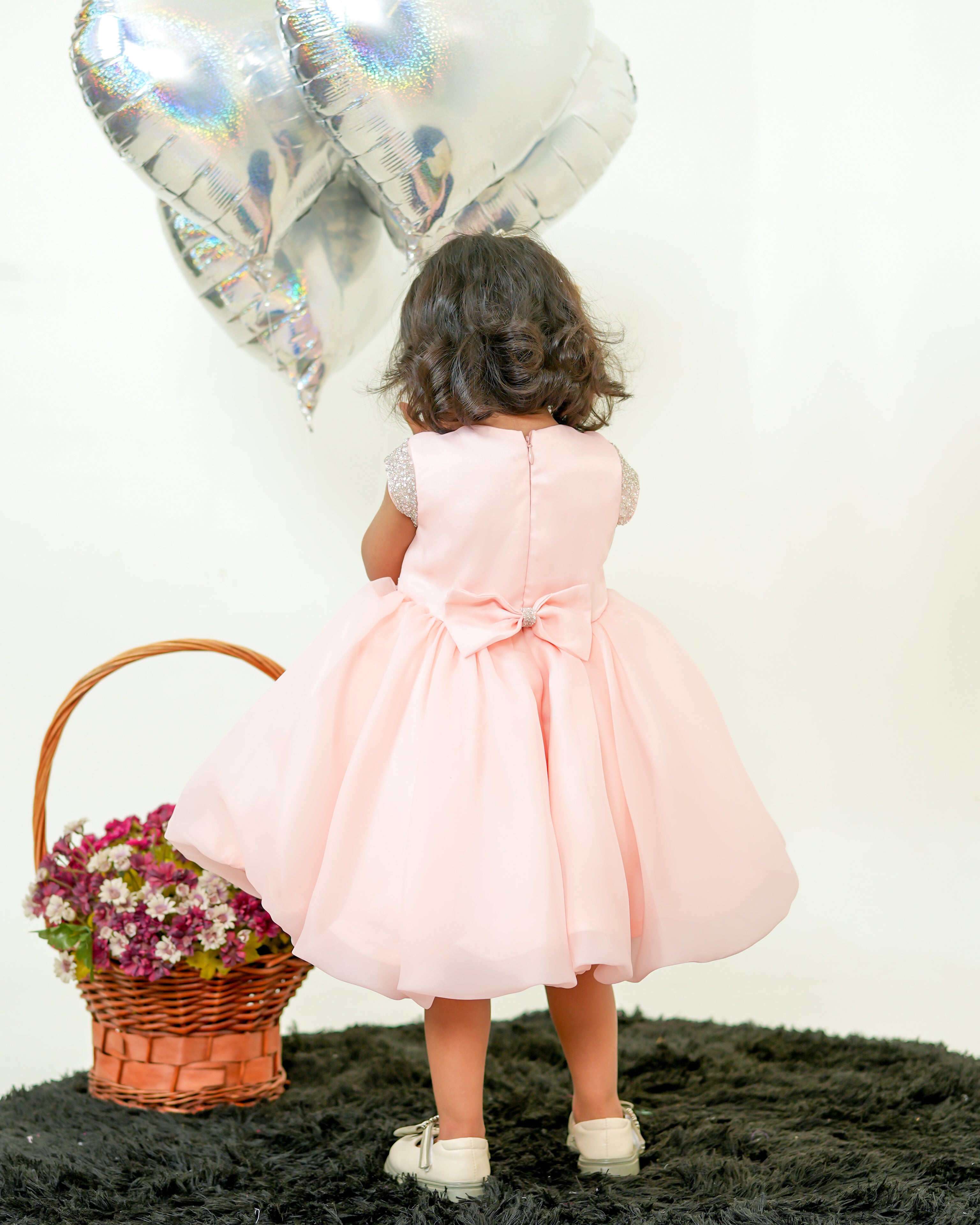Soft, cheerful, and full of charm, the Glittering Balloon Twirly Tutu Dress is made for happy little celebrations. Designed in a warm peach shade, this dress brings a light and playful feel while still looking elegant. The fabric feels gentle on the skin and comes with a soft lining to keep your baby comfortable throughout the day.