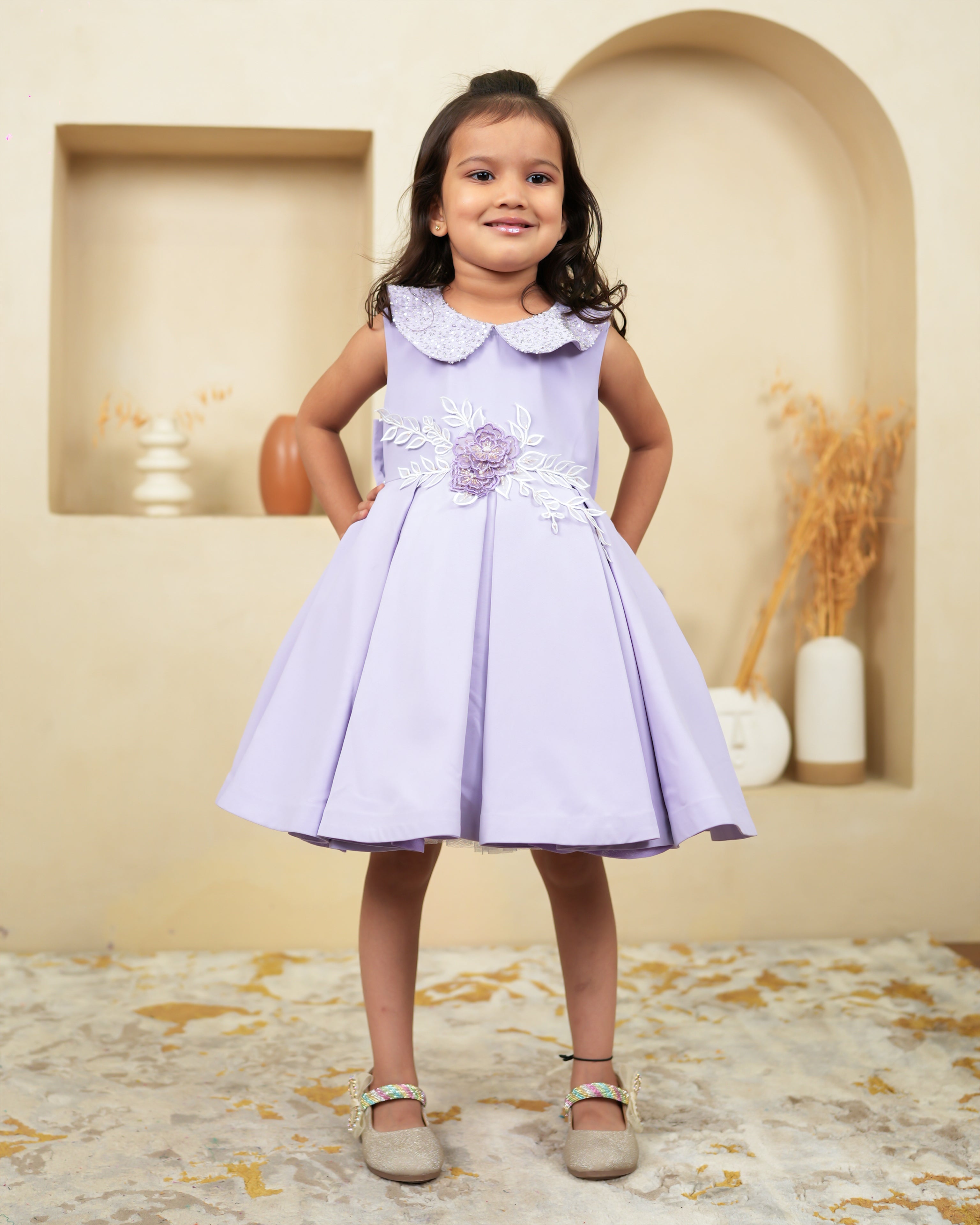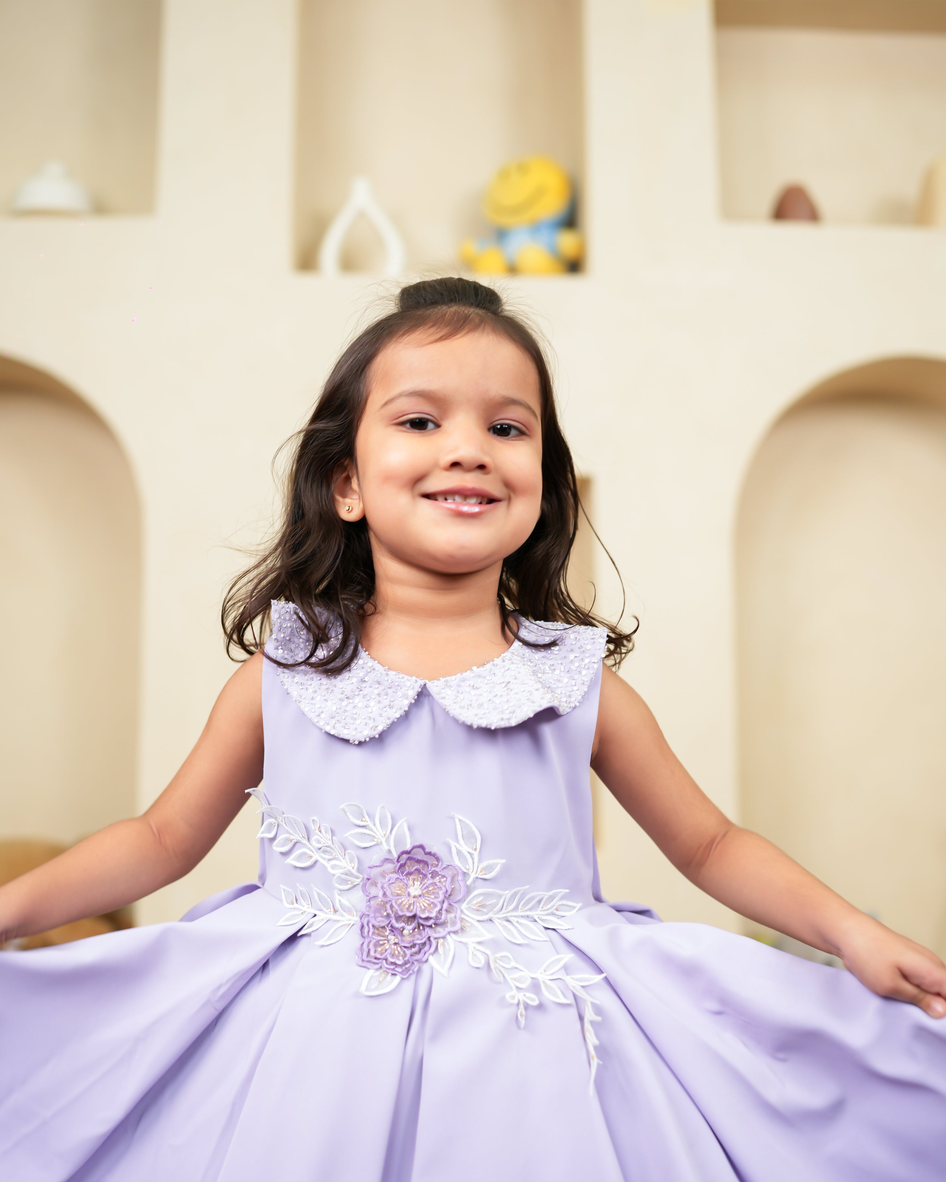 Delicate, dreamy, and effortlessly elegant, the Hydrangea Haze Twirly Tutu Dress is made for picture perfect celebrations. Designed in a soft lilac shade, this dress adds a gentle and graceful charm to your little one’s party look. The smooth satin fabric paired with a comfortable lining keeps your baby feeling at ease while looking beautifully dressed.
