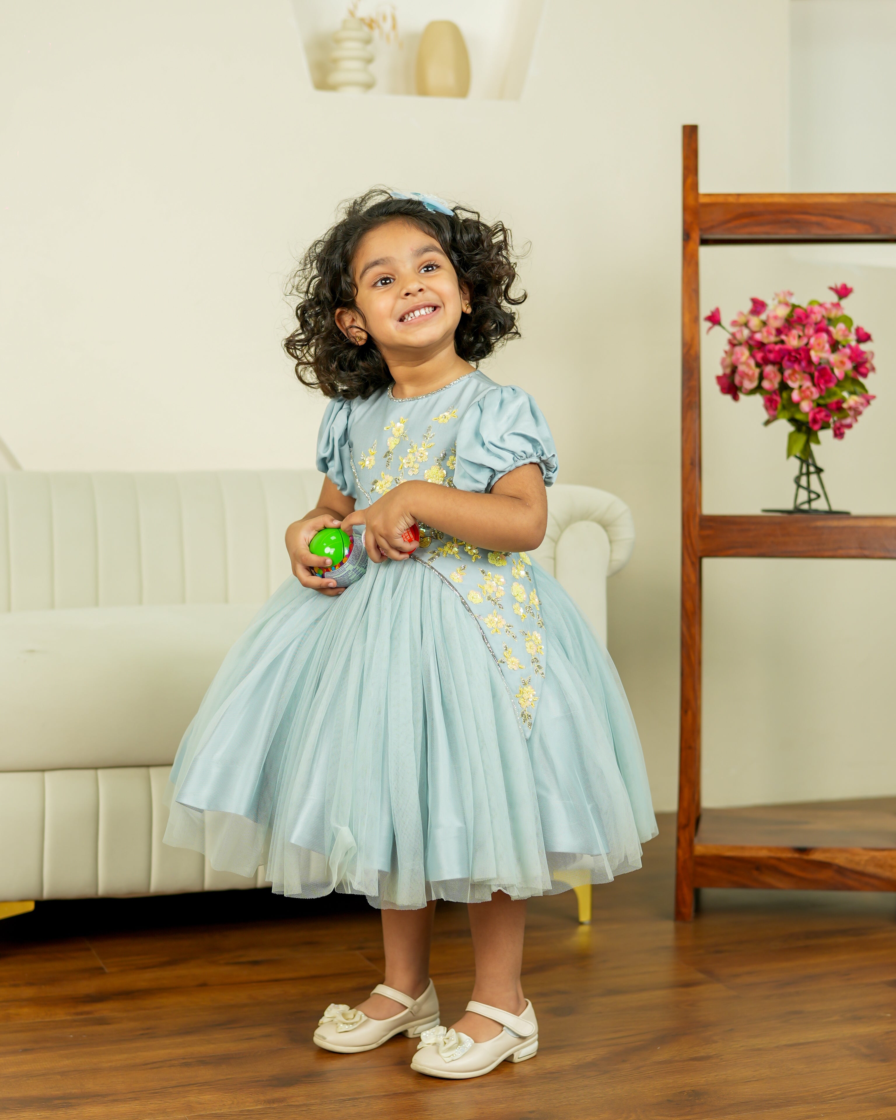 The twirly silhouette adds a playful charm, making it ideal for parties, family gatherings, and memorable photo moments. Finished with a concealed zip for easy dressing, it blends beauty with everyday practicality.